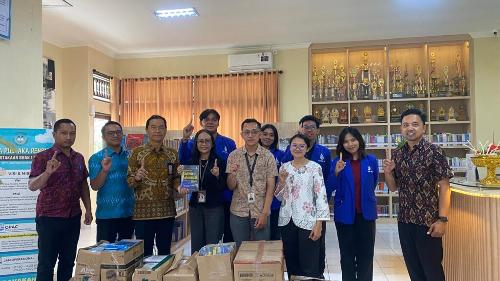 DENPASAR – ITB STIKOM Bali memberikan ribuan buku hasil karya dosen ITB STIKOM Bali kepada SMA Negeri 1 Rendang, Karangasem. Buku-buku tersebut untuk menambah koleksi perpustakaan sekolah.